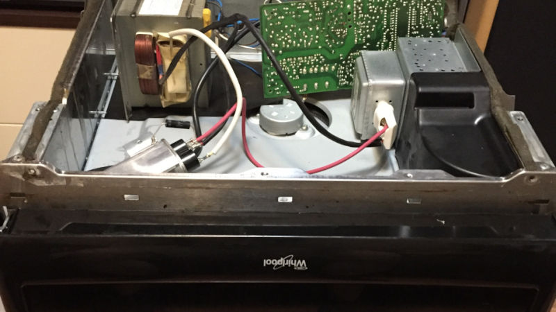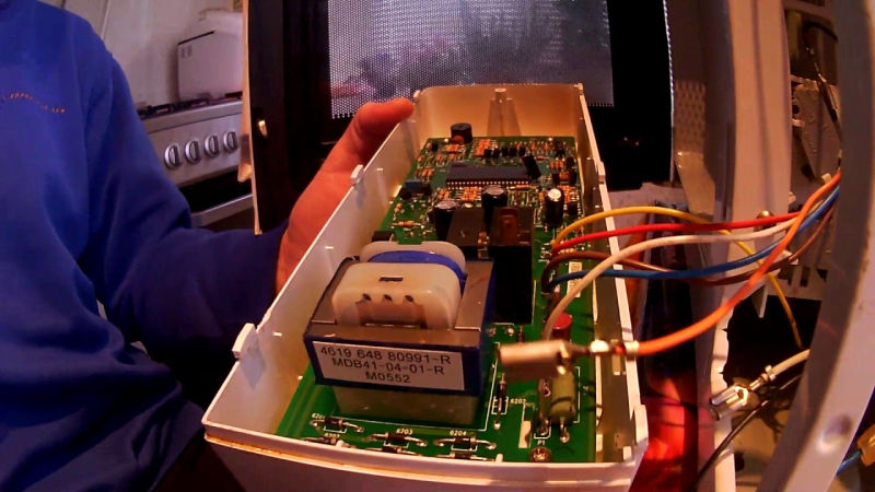 В первую очередь нужно внимательно осмотреть кабель питания. На нем не должно быть перегибов или погорелых участков из-за короткого замыкания или механических воздействий. Поврежденный кабель нужно заменить. Микроволновая печь может не подавать признаков жизни, если сгорел высоковольтный или температурный датчик. Потребуется их замена. Если СВЧ-печка не включается и слышен сильный гул, то это указывает на поломку высоковольтного трансформатора. Проверяются обмотки трансформатора с помощью мультиметра.